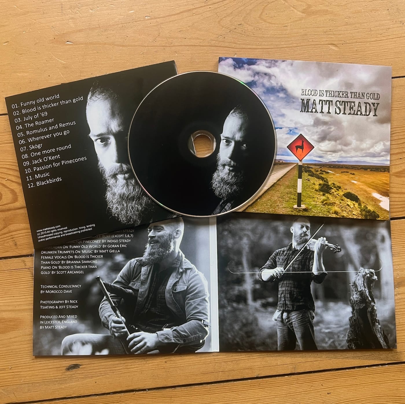 ‘Blood is thicker than gold’ – the full album. Presented in a jewel case containing beautiful photography by Nick Tsiatinis and Jeff Steady.